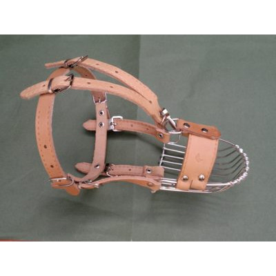 Proteggi il tuo cane con una MUSERUOLA IN CUOIO PER ESCHE CON TONDINI IN METALLO oppure con la MUSERUOLA COPRI NASO PER ESCHE LIQUIDE, entrambe regolabili.